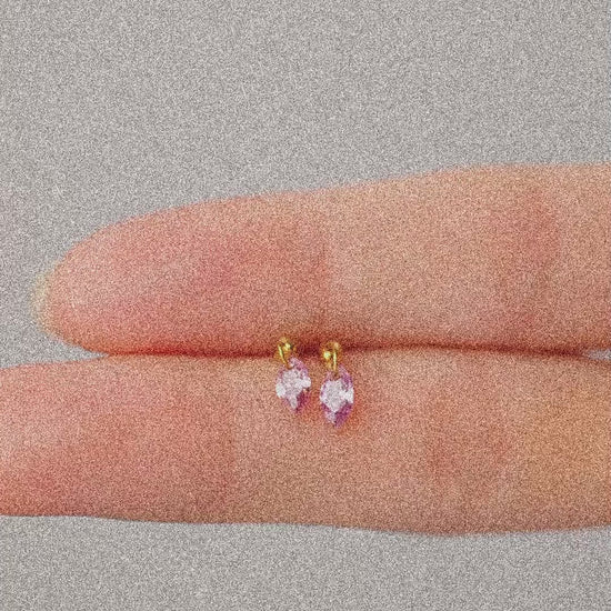 Boucles d'oreilles pendantes marquise rose à dos plat