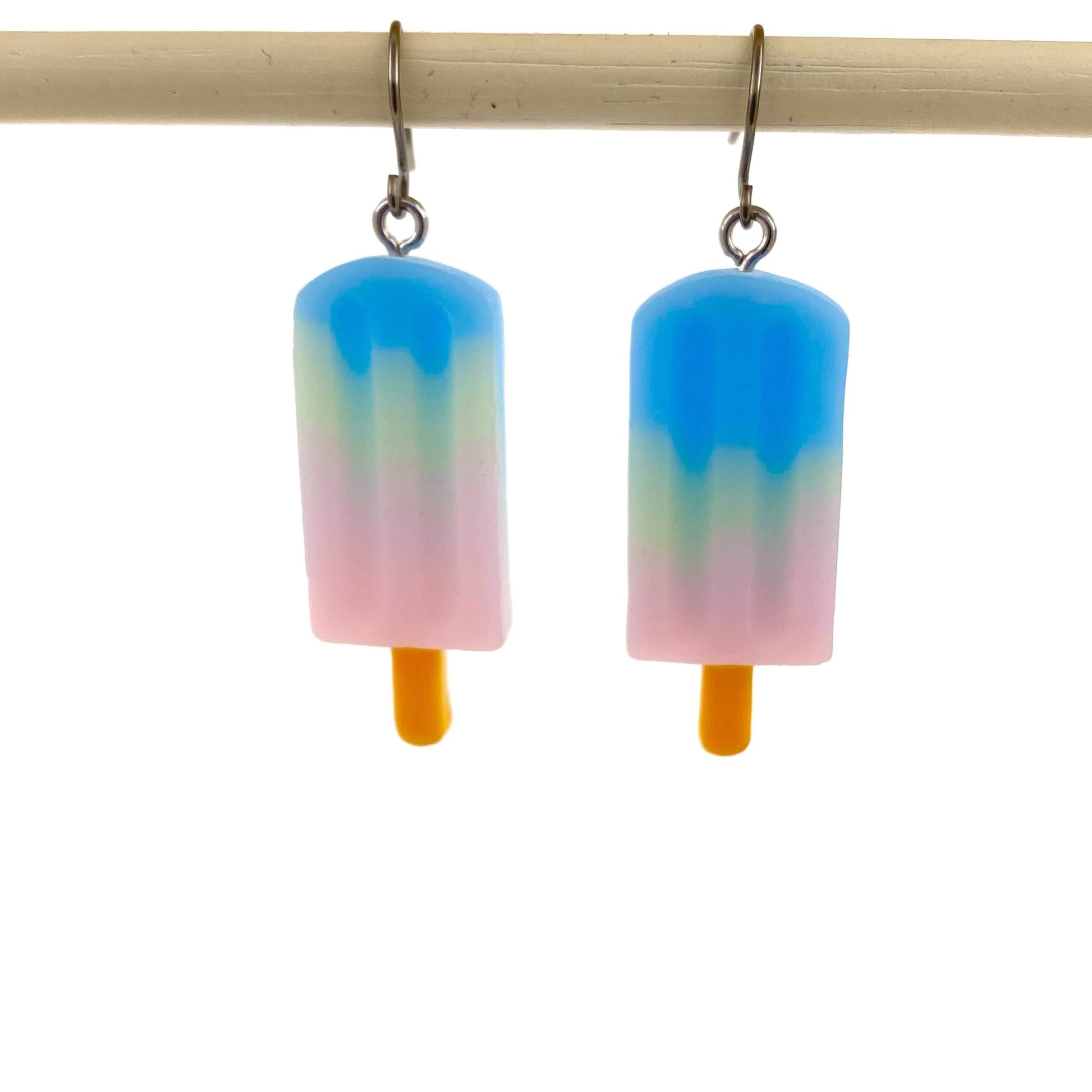Popsicle earrings are the perfect treat for a hot day. Why not bring that refreshing sensation to your ears with our popsicle earrings? Popsicle earrings available in 9 flavors. Red blue strawberry, Green orange lime, orange purple orange. Choose your favorite flavor of ice pops to wear all day long! These titanium earrings will not irritate your ears due to their hypo-allergenic properties.